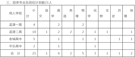 2020年洛陽教師招聘 河南洛陽孟津縣面向高校直接招錄高中教師公告【21名】