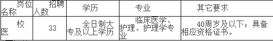 鼓樓區(qū)屬各中小學(xué)幼兒園因工作需要,現(xiàn)向社會(huì)誠聘33名校醫(yī)(非正式編制的勞務(wù)派遣人員),具體要求如下: