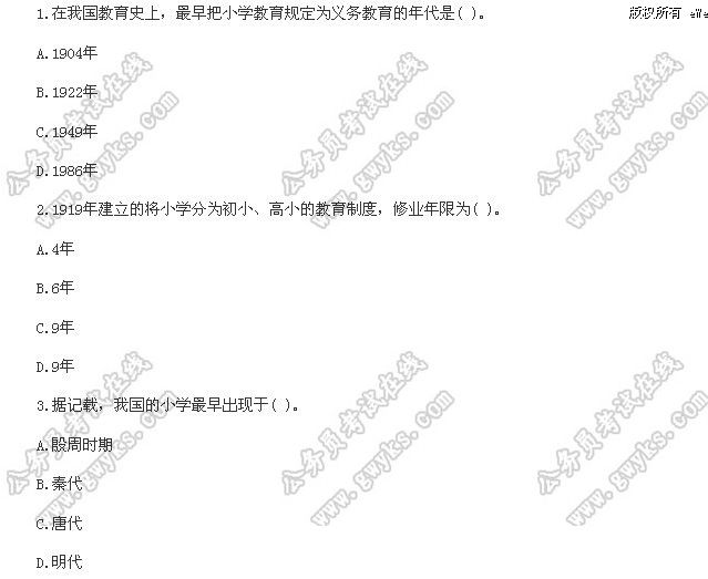 3.A.我國(guó)的小學(xué)產(chǎn)生于殷周時(shí)代,西周時(shí)期,周天子建立了小學(xué),這是我國(guó)最早的小學(xué)。