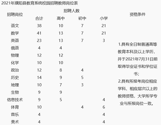 為了給今年優(yōu)秀大學(xué)畢業(yè)生提供更好的就業(yè)機(jī)會(huì),經(jīng)濮陽(yáng)縣委、縣政府研究,決定擬面向部分高校招聘2021屆優(yōu)秀畢業(yè)生到縣直中小學(xué)校任教。感謝您的參與!