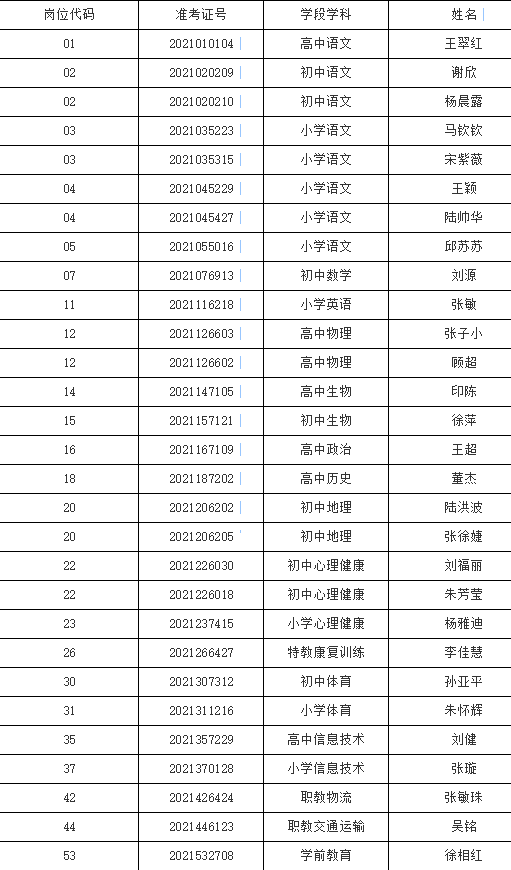 附:2021年如東縣教育系統(tǒng)公開招聘教師遞補(bǔ)進(jìn)入體檢的人員名單