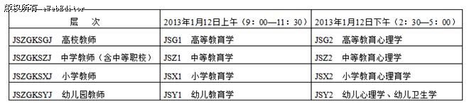 (三)“教師資格考試”設(shè)置的層次和考試科目如下表, 用于“教師資格考試”的考號(hào)只能選擇表中所列層次及相應(yīng)課程。