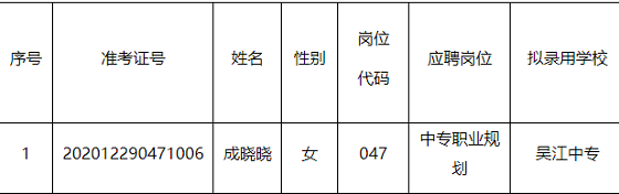 根據《2020年面向公辦學校代課教師第二次招聘備案制教師簡章》,經過考試、體檢、政審等程序,以下擬錄用人