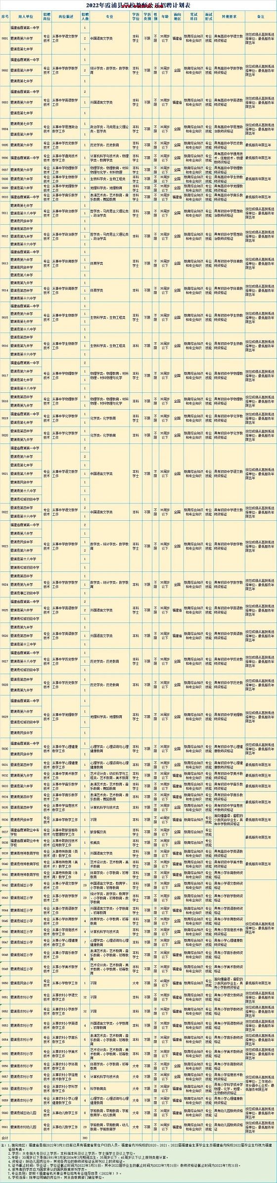 今年我縣公開招聘教師名額為300名,具體崗位見《2022年霞浦縣學(xué)校教師公開招聘計劃表》