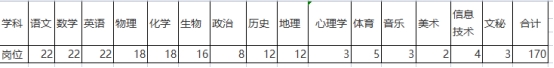 擬公開招聘高中教師170名,具體崗位及人數(shù)如下: