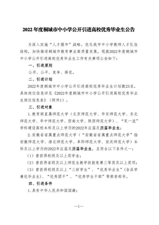 附件1:2022年度桐城市中小學公開引進高校優(yōu)秀畢業(yè)生崗位信息表.xls |