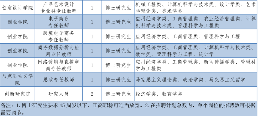 1.高層次人才招聘:專業(yè)帶頭人若干名、高技能人才2名、博士22名。