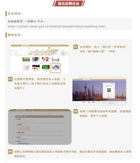 4、錄用手續(xù)辦理:經(jīng)學(xué)校綜合測試合格者,同時必須符合閔行區(qū)教師招聘條件(請應(yīng)聘者務(wù)必在規(guī)定時間內(nèi)上閔行教師招聘官網(wǎng)上報名,報名方法見下圖),完成并通過閔行區(qū)教師招聘考試者,按事業(yè)單位規(guī)定程序正式錄用。