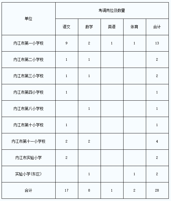 中小學(xué)崗位面向內(nèi)江市市中區(qū)符合報(bào)考條件的農(nóng)村中小學(xué)在職在編教師;進(jìn)修校崗位面向內(nèi)江市市中區(qū)城鄉(xiāng)學(xué)校符合報(bào)考條件在職在編教師。