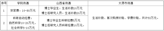 按照“一事一議、一人一策”的原則,學(xué)院提供安家費(fèi)及科研啟動(dòng)經(jīng)費(fèi),來(lái)校工作后,根據(jù)《獎(jiǎng)勵(lì)博士畢業(yè)生及博士后研究人員來(lái)晉工作實(shí)施辦法》(晉財(cái)教〔2020〕96號(hào))、《高校畢業(yè)生和高技能人才來(lái)并工作補(bǔ)助(貼)發(fā)放實(shí)施辦法》和《本土人才能力素質(zhì)提升補(bǔ)助發(fā)放辦法》,協(xié)助辦理山西省、太原市的相關(guān)人才待遇,具體如下: