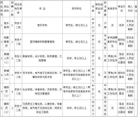 01崗位的考試方式為試講;02、04、05共3個(gè)崗位的考試方式為結(jié)構(gòu)化面試;03、06共2個(gè)崗位的考試方式為筆試加結(jié)構(gòu)化面試?荚嚪绞絻H為試講或結(jié)構(gòu)化面試的4個(gè)崗位,資格審查合格者超過30人的崗位需增加筆試環(huán)節(jié)。招聘崗位為緊缺專業(yè)的專業(yè)技術(shù)人員,經(jīng)主管部門批準(zhǔn),招聘崗位可以不受不低于1:3開考比例的限制。