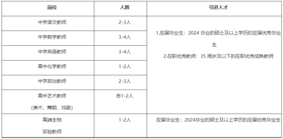 說明:以上引進(jìn)崗位需求為學(xué)校兩校區(qū)總需求,應(yīng)聘人員須服從學(xué)校工作安排;其中“中學(xué)**教師”一般是指能勝任高、初中的學(xué)科教學(xué)工作。