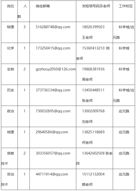 工作地點(diǎn)為高中部科學(xué)城校區(qū)或初中部應(yīng)元路校區(qū)。