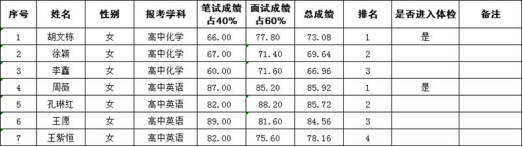 2023年6月江蘇南京市高淳區(qū)湖濱高級(jí)中學(xué)公開(kāi)招聘教師體檢人員名單