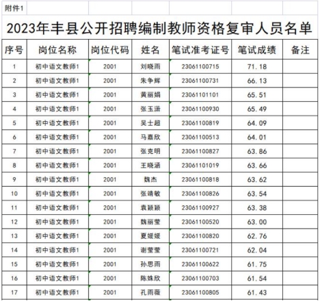 根據(jù)《2023年豐縣公開招聘編制教師公告》要求,現(xiàn)將資格復審名單(詳見附件1)及相關事項通知如下: