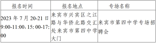 根據(jù)自治區(qū)、來賓市關(guān)于事業(yè)單位公開招聘工作相關(guān)文件和《中共來賓市委人才工作領(lǐng)導(dǎo)小組關(guān)于同意我市高中階段學(xué)校以直接面試或考核方式招聘教師的批復(fù)》(來人才復(fù)〔2022〕9號(hào))、來賓市人力資源和社會(huì)保障局關(guān)于印發(fā)《來賓市事業(yè)單位公開招聘人員實(shí)施細(xì)則(修訂)》的通知》(來人社規(guī)〔2022〕2號(hào))等精神,經(jīng)研究,決定組織舉辦來賓市第四中學(xué)專場(chǎng)招聘會(huì),招聘數(shù)學(xué)教師2人。現(xiàn)將有關(guān)事項(xiàng)公告如下: