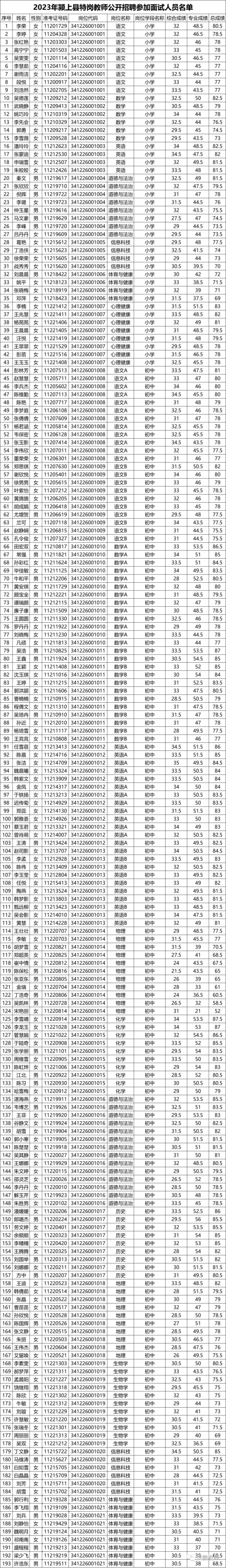 附件:2023年潁上縣特崗教師公開招聘參加面試人員名單