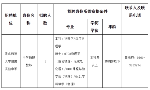 咨詢(xún)電話(huà):淮北師范大學(xué)人事處0561-3801056