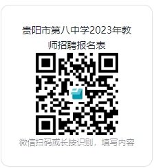 凡符合應(yīng)聘條件者,請(qǐng)用手機(jī)掃描下方二維碼,按實(shí)填報(bào)《貴陽(yáng)市第八中學(xué)2023年教師招聘報(bào)名表》(https://f.kdocs.cn/g/z7izjCMy/【金山表單】邀你填寫「貴陽(yáng)市第八中學(xué)2023年教師招聘報(bào)名表」)。填寫時(shí)請(qǐng)確保所提供的個(gè)人信息真實(shí)有效,若因提供虛假信息或隱瞞相關(guān)情況影響后續(xù)應(yīng)聘及錄用的,后果自行承擔(dān)。