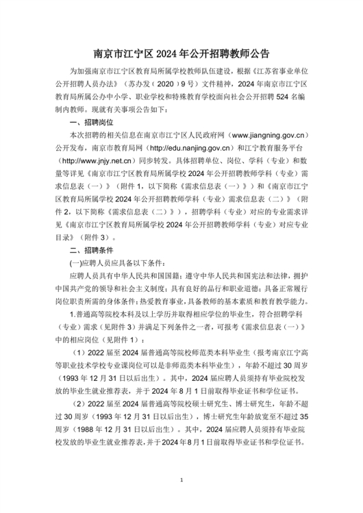 附件1:南京市江寧區(qū)教育局所屬學(xué)校2024年公開招聘教師學(xué)科(專業(yè))需求信息表(一).xlsx