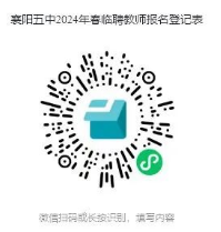 1.發(fā)布公告并接受報(bào)名。從即日起有意者可發(fā)簡(jiǎn)歷至郵箱1045231453@qq.com,郵件主題為“高中語(yǔ)文/物理/化學(xué)/生物臨聘教師招聘-姓名-畢業(yè)院!保⑻顚憽断尻(yáng)五中臨聘教師報(bào)名登記表》(填寫地址:https://f.wps.cn/g/nNtS5i6T/,或微信掃描下方二維碼填寫)