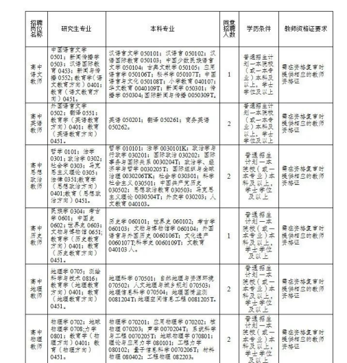 2.普通招生計劃一本院校(或一本專業(yè))及以上學歷2022年、2023年、2024年優(yōu)秀畢業(yè)生,所學專業(yè)與招聘教學崗位要求相符(未在編在崗,在校期間總體成績優(yōu)異,所學專業(yè)必修科目無掛科且須在資格復審時提供相應的教師資格證)。