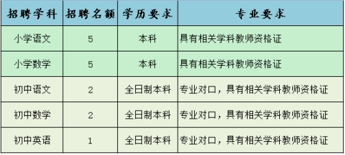 *初中教師應(yīng)聘學(xué)科必須與教師資格證學(xué)科、畢業(yè)證專業(yè)相符,有教學(xué)經(jīng)驗(yàn)者優(yōu)先。