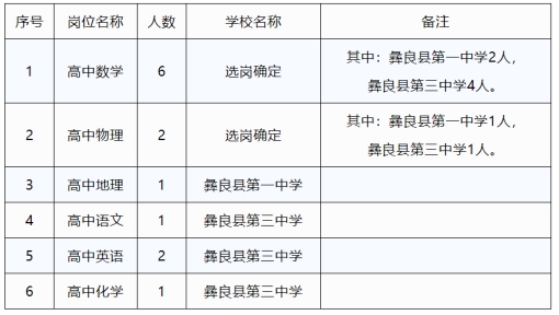 本次公開(kāi)選調(diào)高中教師13人,崗位設(shè)置如下: