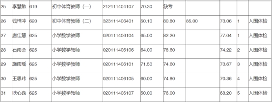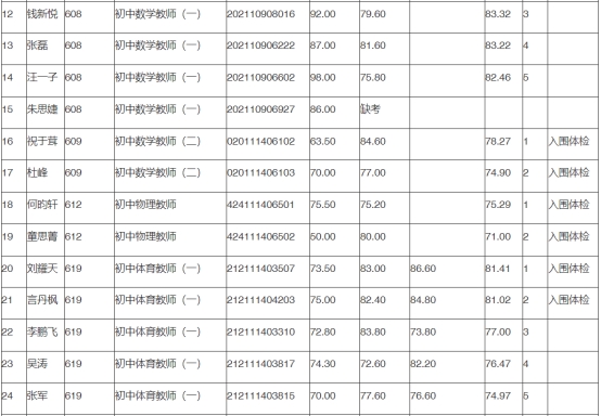 根據(jù)《揚中市教育局所屬學校2024年公開招聘教師、校醫(yī)公告》(鎮(zhèn)揚事招備案〔2024〕3號)規(guī)定,現(xiàn)將部分崗位(崗位代碼為601、602、608、609、612、619、620、625)考試總成績予以公布,如有異議請與揚中市教育局(0511—88323215)聯(lián)系。公示時間為2024年6月26日至6月28日。
