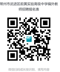 掃描“常州市武進(jìn)區(qū)前黃實驗高級中學(xué)編外教師招聘報名表”在線填寫。