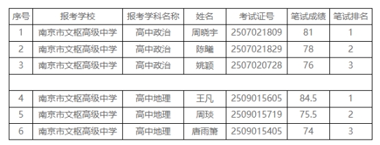 根據《南京市教育系統(tǒng)部分事業(yè)單位2024年10月公開招聘教師公告》(寧事招公告(R)〔2024〕36號)要求,在南京市秦淮區(qū)教育局監(jiān)督指導下,我校資格復審工作已經結束,周曉宇等6人通過資格復審,具備面試資格,具體人員名單及排名附后。