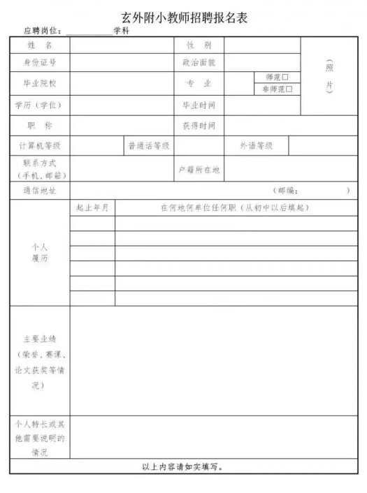 玄外附小教師招聘報(bào)名表