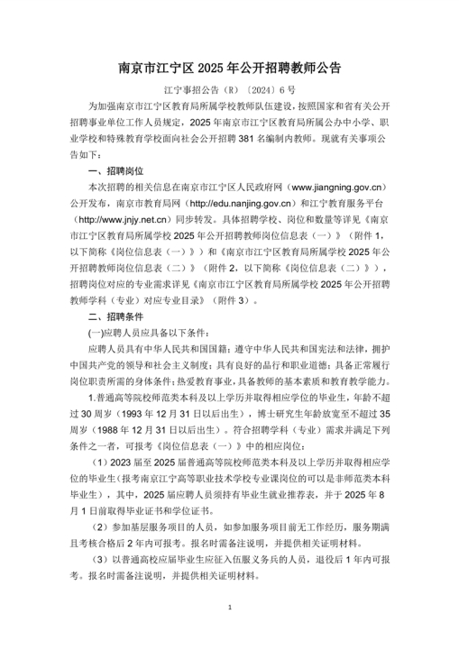 附件1:南京市江寧區(qū)教育局所屬學(xué)校2025年公開(kāi)招聘教師崗位信息表(一).xlsx