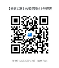 1.報(bào)名:將個(gè)人簡(jiǎn)歷及相關(guān)材料(學(xué)科+姓名+畢業(yè)院校)發(fā)送至412451240@qq.com或郵寄至綿陽(yáng)經(jīng)開(kāi)區(qū)文武路138號(hào)綿陽(yáng)博美實(shí)驗(yàn)高級(jí)中學(xué)辦公室(郵編621000)
