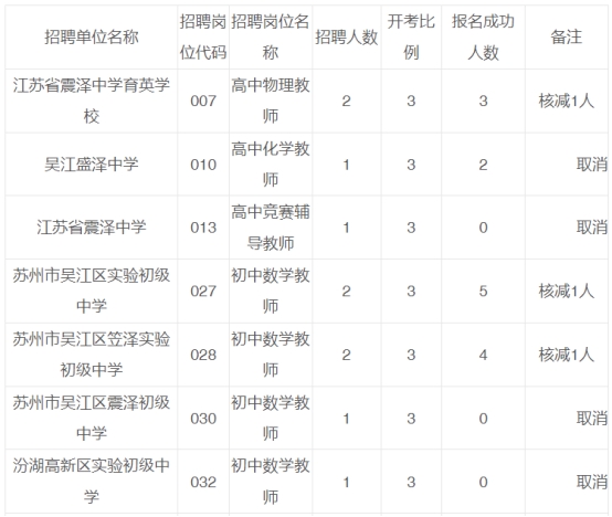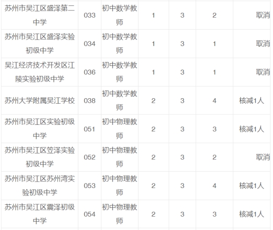 蘇州市吳江區(qū)教育系統(tǒng)公開招聘2025年優(yōu)秀畢業(yè)生至報(bào)名結(jié)束后,共有24個(gè)崗位報(bào)名人數(shù)不足開考比例。現(xiàn)根據(jù)規(guī)定,核減招聘計(jì)劃,并公布如下: