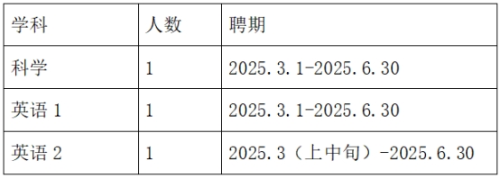 為適應東莞市東城街道教育事業(yè)發(fā)展需要,保障我校日常教育教學工作的正常開展,加強師資隊伍的建設,我校誠聘英語教師2名(任教五年級)、科學教師1名,具體公告如下: