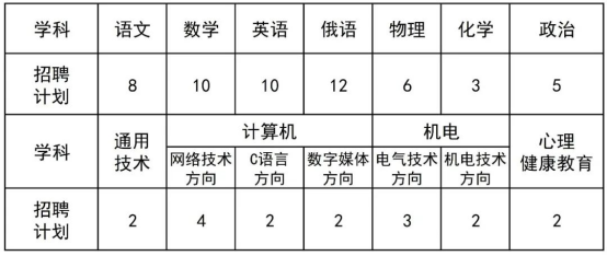 5.應(yīng)聘人員應(yīng)具備與應(yīng)聘學(xué)科相符的高級(jí)中學(xué)教師資格證。(其中,報(bào)考計(jì)算機(jī)和機(jī)電學(xué)科的具備相應(yīng)中職教師資格證亦可;具有職教高考教育工作經(jīng)驗(yàn)、英語(yǔ)四級(jí)及以上者優(yōu)先考慮);