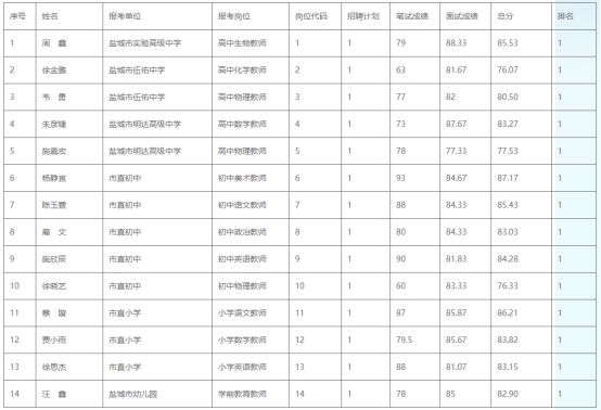 江蘇省鹽城市教育局直屬學(xué)校2025年公開招聘教師入圍體檢、考察人員名單