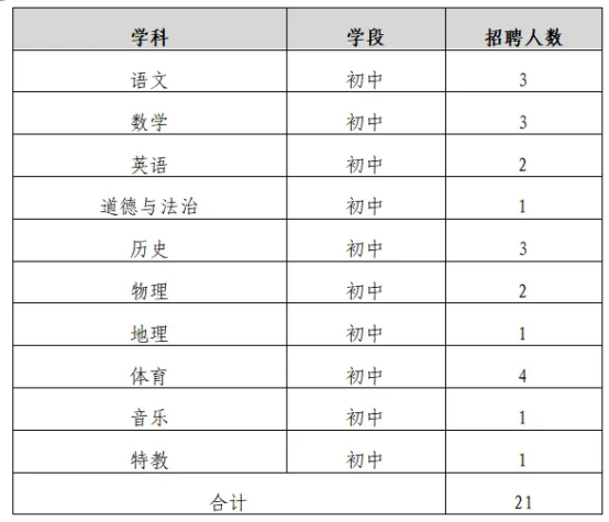 招聘語文、數(shù)學(xué)、英語等學(xué)科教師21名。