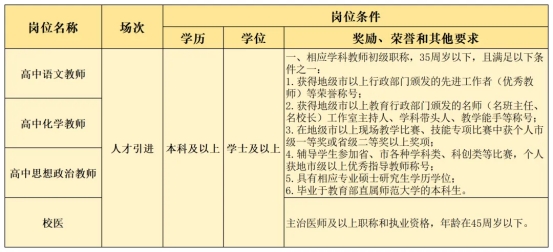 高中語文教師、高中化學(xué)教師、高中思想政治教師、校醫(yī)