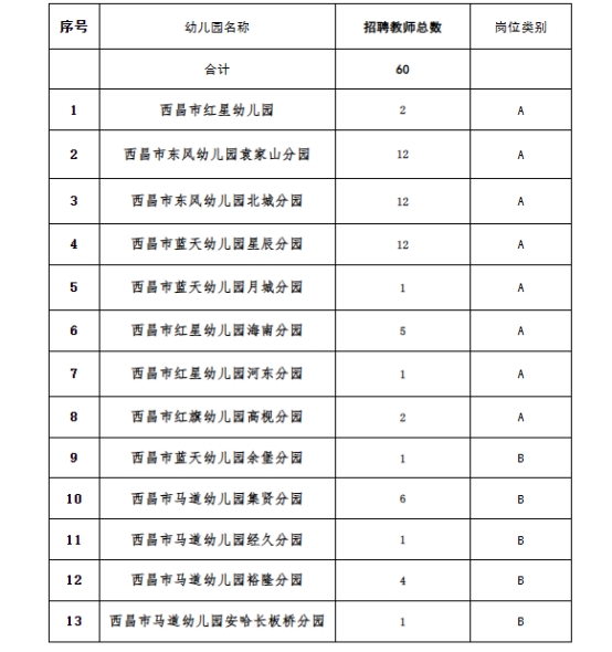 此次招考教師為非正式編制人員,凡經(jīng)錄用人員將嚴格依照《勞動合同法》簽訂勞動合同,人員經(jīng)費由市財政每年核定后下?lián)堋,F(xiàn)將有關(guān)事項公告如下(本公告同時在西昌市人力資源服務(wù)中心微信公眾號、西昌教育微信公眾號發(fā)布)。