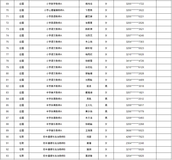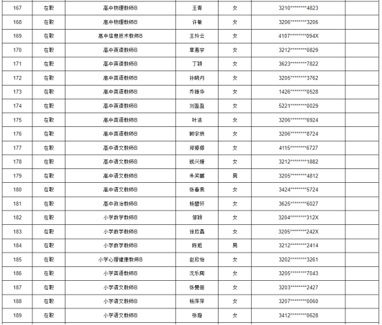根據(jù)《2025年蘇州高新區(qū)教育系統(tǒng)公開招聘事業(yè)編制教師公告》要求,經(jīng)過報名、資格初審、考試、資格復(fù)審,體檢和考察合格,擬錄用陶燦等199名同志,現(xiàn)予以公示: