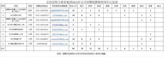 本次招聘崗位計(jì)劃詳見《長(zhǎng)沙縣特立教育集團(tuán)2025年公開招聘校聘教師崗位計(jì)劃表》(招聘崗位數(shù)可視2025年9月學(xué)生實(shí)際到校人數(shù)進(jìn)行調(diào)整)。