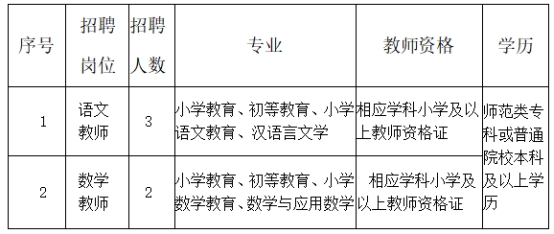 小學語文編外教師3人,小學數(shù)學編外教師2人。