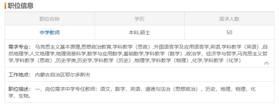 鄂爾多斯市東勝區(qū)赴北京意向性招聘教師公告