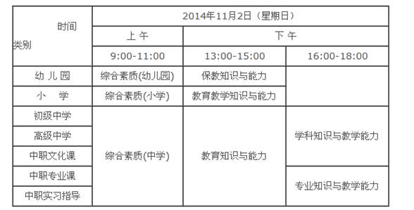 問:2014年下半年教師資格考試筆試時(shí)間是如何安排的?
