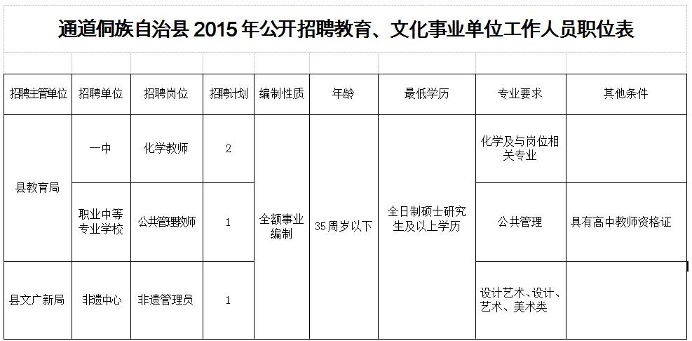 附件: 通道侗族自治縣2015年公開招聘教育、文化事業(yè)單位工作人員計(jì)劃及崗位表
