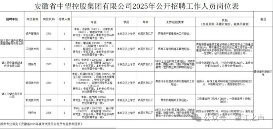 招聘單位咨詢電話:詳見《安徽省中望控股集團(tuán)有限公司2025年公開招聘工作人員崗位表》