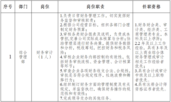為進(jìn)一步加強(qiáng)團(tuán)隊(duì)力量,引進(jìn)優(yōu)秀專業(yè)人才,結(jié)合實(shí)際工作需要,公司擬面向社會(huì)公開招聘工作人員1名,現(xiàn)將有關(guān)事項(xiàng)公告如下:
