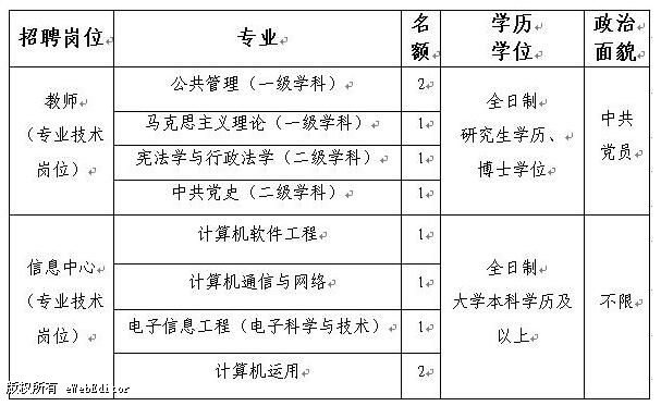 根據(jù)工作需要,按照《事業(yè)單位人事管理?xiàng)l例》(國務(wù)院令第652號)、《海南省事業(yè)單位公開招聘人員實(shí)施辦法》(瓊?cè)松绨l(fā)〔2011〕100號)等有關(guān)規(guī)定,我校擬公開招聘專業(yè)技術(shù)人員10名。